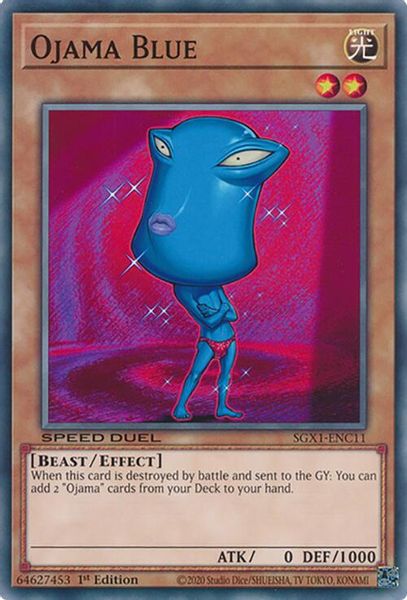 Description: When this card is destroyed by battle and sent to the Graveyard, you can add 2 Ojama cards from your Deck to your hand.